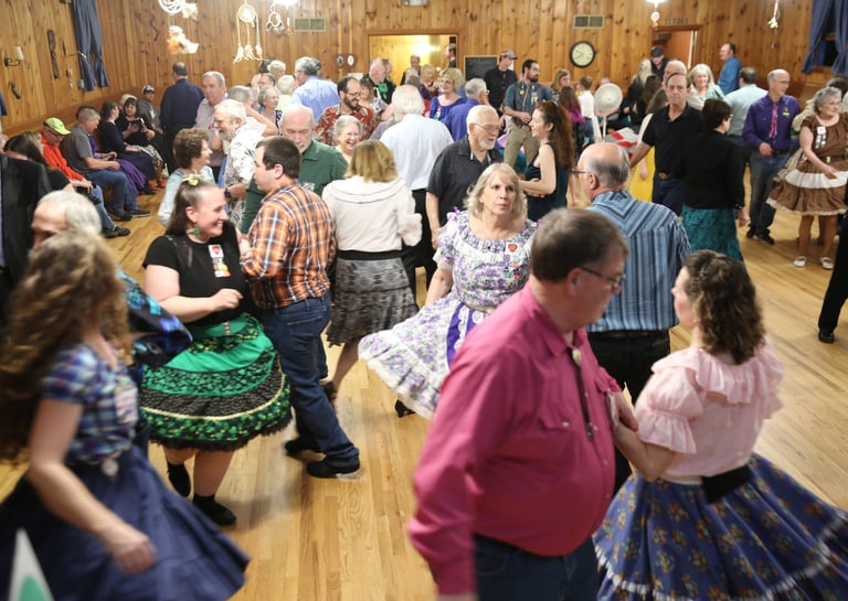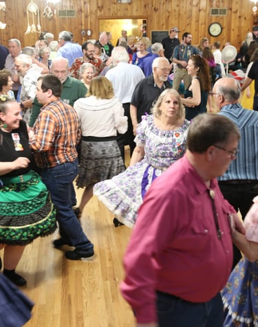 Leonard called for the Braids and Braves Club for nearly twenty years. Unfortunately, he suffered a fatal heart attack and passed away January 9, 2024. Leonard was well known in Oregon square and round dance communities, and certainly missed. The photo below was taken at the Memorial Dance held in Leonard's honor on March 16, 2024, with 125 attending from 23 clubs.